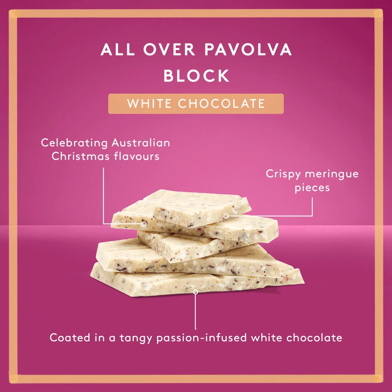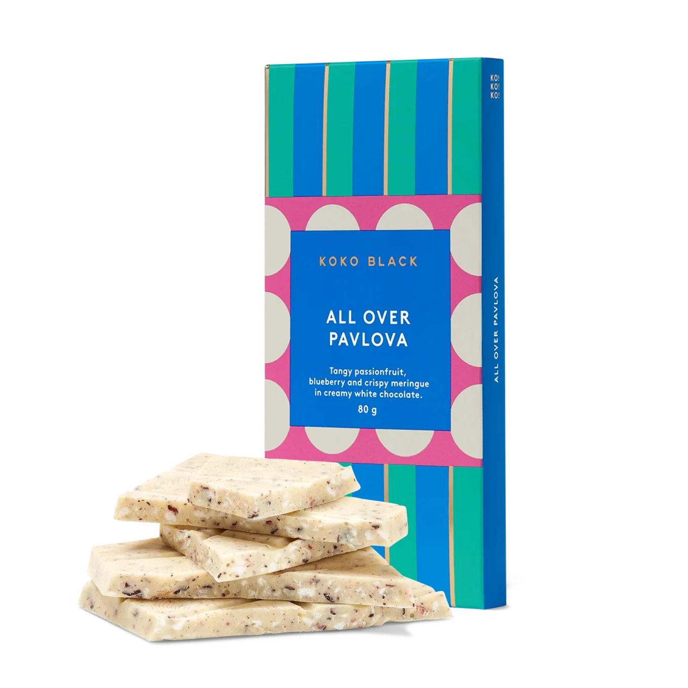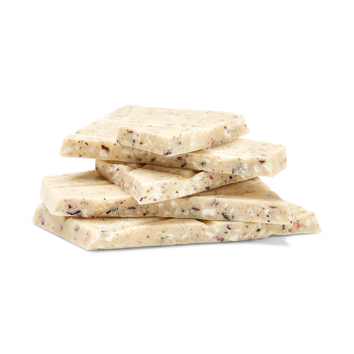 White Chocolate (Sugar, Cocoa Butter, Whole Milk Powder, Emulsifier [Soya Lecithin], Natural Vanilla), Meringue (6%) (Sugar, Wheat Starch, Egg Albumen), Passionfruit Powder, Blueberries.