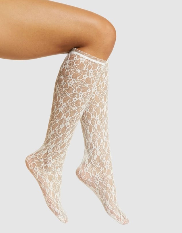 Add a sultry, feminine touch to your look with High Heel Jungle’s Lace Knee Socks. Crafted from sheer lace with a seamless finish and delicate mini ruffle trim, these knee-highs are equal parts elegant and playful. Wear them slouched or tall, and let them peek out from your favorite boots for a subtle statement.
