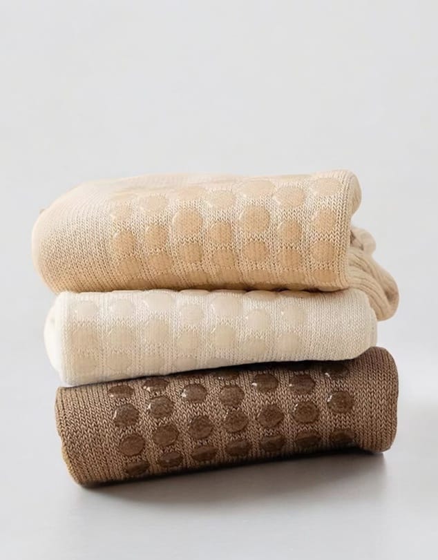 Premium Cotton blend- Superior fit- Full foot Silicon grip- Arch support- Seamless toe- Lurex glitter fleck ankle detail- Ideal comfort and grip