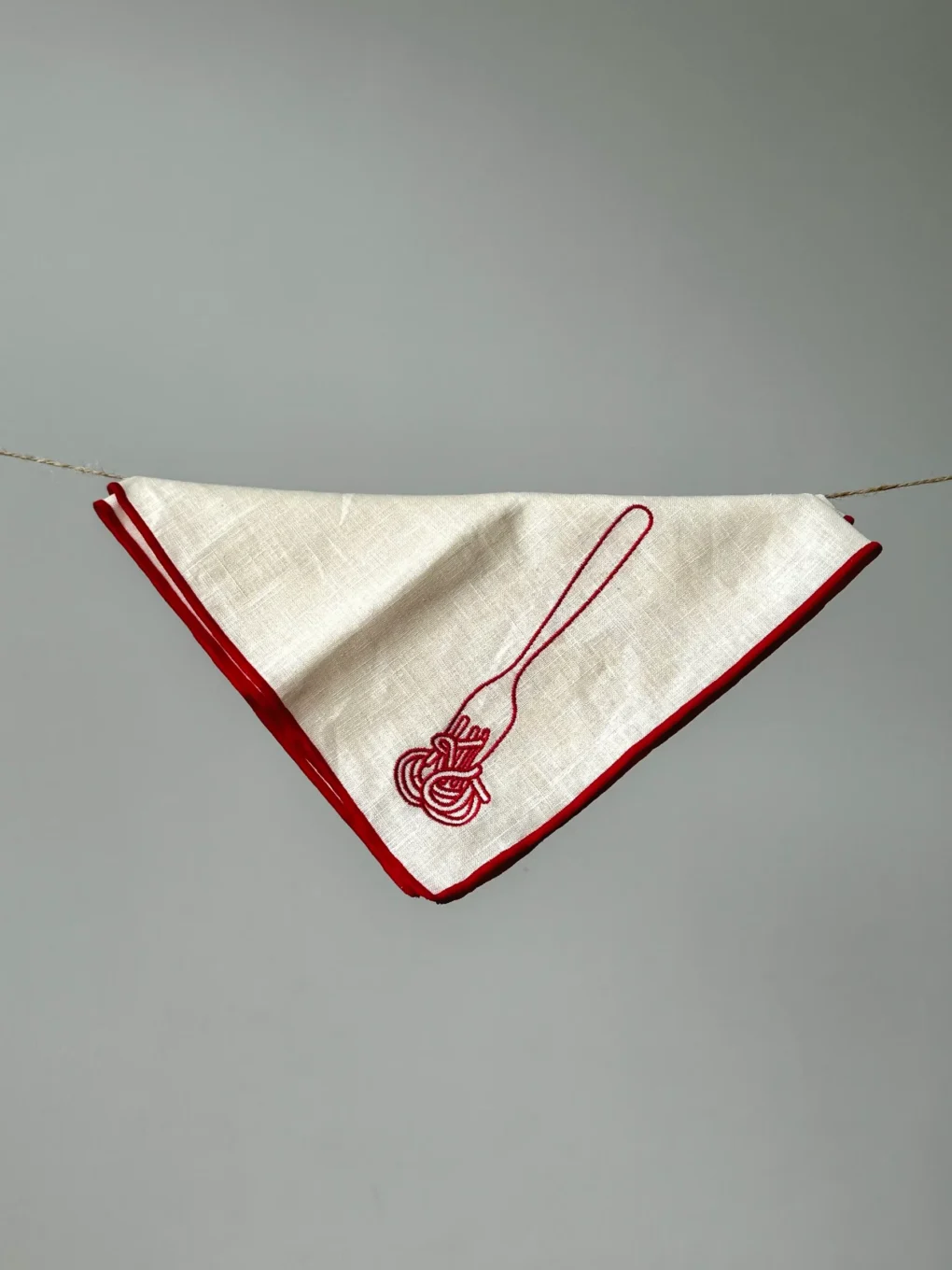 'Never Forgetti Spaghetti'Elevate your hosting game with our vibrant new linen blend napkins! Bursting with colour and infused with playful patterns, these stylish napkins add a touch of fun and sophistication to any gathering. Crafted for both elegance and durability, they are perfect for everything from casual brunches to elegant dinners. Transform your table setting into a celebration with napkins that are as chic as they are charming. Make every meal an occasion to remember!