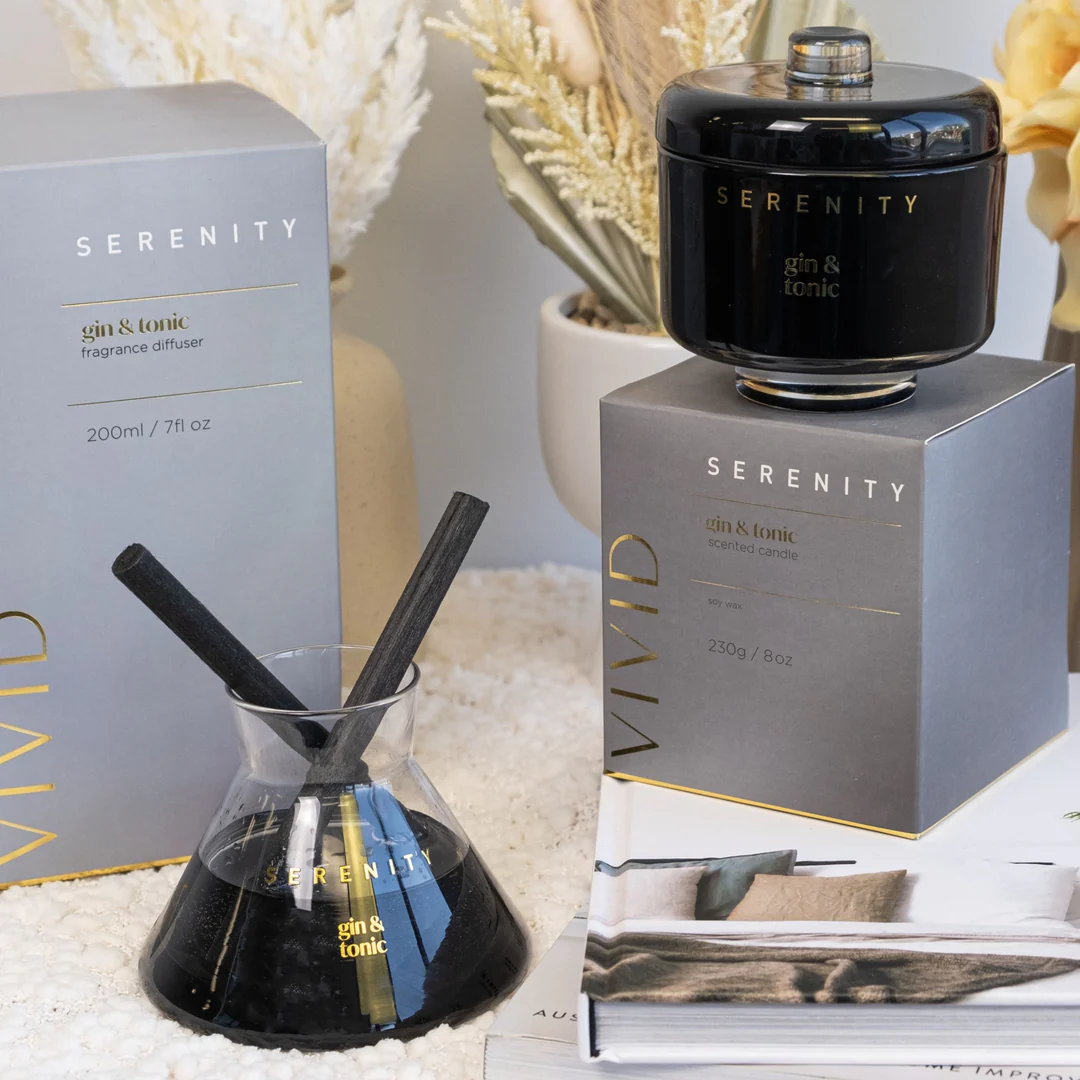 Embrace the essence of tranquility with our Serenity range, where we introduce vibrant and trending scents that captivate your senses. Our candles and diffusers are thoughtfully packaged to highlight each range, offering a glimpse into a moment in time. The products have been crafted with a blend of premium soy wax and quality fragrances, consistently delivering exceptional performance.
